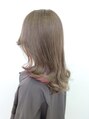 インナーカラーに濃すぎないピンクカラーで存在感をだし、全体を落ちついたシアーグレーカラーで透明感を見せるカラーです。派手すぎない、やりすぎないカラーをしたい方にはオススメです!