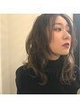 大きめのウェーブで毛先までランダムに動きをつけ、陽の光に透けてキレイなハニーベージュのカラーで仕上げました。やりすぎない、大人っぽさを演出したい方は是非お任せ下さい。