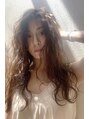 26mmのコテでベースを波ウェーブにし、19mmのコテで表面に巻を足してボリューム感をアップ。スタイリング剤はオイルでツヤ感と束感を。スプレーでふんわり仕上げました。