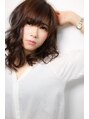 上品なオレンジアッシュのカラーにラフな動きのミディアムカールスタイルです。ツヤ感のあるオレンジアッシュはこれからの季節にオススメです。前髪も目が見えるギリギリの長さが上品なイメージにしてくれるバランスです。