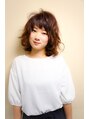 ルーズなカールが可愛いボブスタイルです。重めなシルエットですがカットで軽さを出して、前髪でバランスを合わせる様にカットします。カラーはキュートなフォルムに合わせてピュアブラウンをチョイスしました。