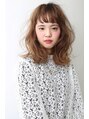 ショートバングが可愛いふんわりミディスタイルです。カラーはハイトーンのピュアベージュで柔らかな質感に。大人の女性にもオススメスタイルです。