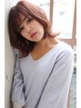 肩位のボブベースの外ハネスタイルです。外ハネスタイルは小顔バランスにしやすいのでオススメです!カラーは大人かわいいアプリコットピンクがこれからの季節にオススメです。
