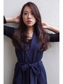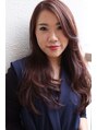 大人の女性にオススメの前髪が長めの毛先カールのロングスタイルです。カラーはツヤ感が綺麗な7レベルのピンクバイオレットです。