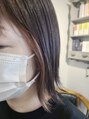 切りっぱなし風ボブ。顔まわりのインナーにブリーチを使わず明るくしました。ピンクベージュ系のカラーで大人女性にもチャレンジしやすいですね!