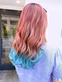 小顔韓国ロングレイヤーテールカラーピンク派手髪20代30代40代