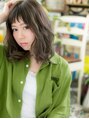 【スタイルは★ブックマーク★が便利】くせ毛風カールでニュアンス感ある動きを出した抜け感小顔エアリーミディ。個性的なオン眉で隙を作って、カジュアルガーリーな雰囲気に。モード風、耳かけやシースルーバングも大人可愛い(メイク担当:川口店成田)