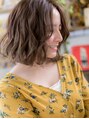 【スタイルは★ブックマーク★が便利】くせ毛風無造作カール×センターパートでラフに仕上げた抜け感ボブディ。前下がりで輪郭カバーして小顔。切りっぱなしボブやマッシュボブ、ミニボブや前下がりボブからの伸ばしかけに◎(メイク担当:北浦和店 成田)
