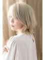 ハイトーンカラーのシルバーアッシュが個性的。外国人風ルーズカールの抜け感こなれヘア。ノーバングやかきあげバングでこなれ感を出して小顔見せ♪ナチュラルボブやマッシュボブ、くびれボブなどからの伸ばしかけにオススメなクールなエアリーミディ。