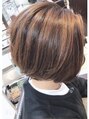 カラーのダメージを減らすため、ブリーチなしのハイライトをいれています。ボブスタイルは、表面を入れるだけで、全然イメージが違います!予防美髪カラーとハイライトの組み合わせなので、よりダメージを出さないようにしています!