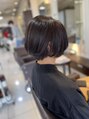 髪質改善・予防美髪カラー・大人ショートスタイル・カラーと一緒にトリートメントをする事で、髪が傷まなくツヤのるカラーになります。仕上げは、アイロンを使うと、直毛の方は子供っぽくならないです。
