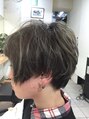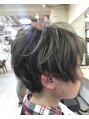 カットは前下がりにのショートスタイルにカットをして、カラーはブリーチのハイライトを全体に入れて、ベースのカラーを暗めのアッシュグレイ系でカラーリングしました☆ショートスタイルがハイライトの効果でより動きがでます!