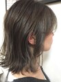 ベースのカットは重めのボブにカットしました!カラーは全体に細かいブリーチメッシュを入れてあるベースに暗めのアッシュグレージュ系をオンカラー☆透明感が出てカラーの退色も楽しめます^_^