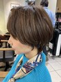 裾はしっかりタイト。前髪からサイドへの流れるラインでしっかり似合わせして、全体のシルエットで小顔効果も出します。カラーは暗すぎないグレーベージュをナチュラルな色味で柔らかく染めてます。