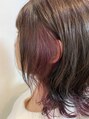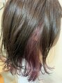 インナーをブリーチした後に、パープルをオンカラーしました!上は暗めのアッシュ系でカラーすると、インナーのパープルカラーと相性が◎です^ ^耳にかけたり、アレンジなどするとインナーカラーがチラッと見えてかわいいです!!