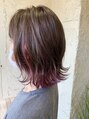 インナーをブリーチした後に、パープルをオンカラーしました!上は暗めのアッシュ系でカラーすると、インナーのパープルカラーと相性が◎です^ ^耳にかけたり、外はねにアレンジなどするとインナーカラーがチラッと見えてかわいいです!!