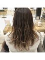 グレイカラーですが、ハイライトをたっぷり入れることで透明感出しています。ロングもレイヤーを入れて動きやすいので、セットしやすいです。
