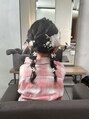 持って来てくれた飾りとの相性ばっちりなツインの編みおろしstyle♪しっかりゴムでくくっているので動いても崩れにくい◎