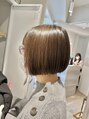 毛先のぷつっと感が可愛いストレートボブに、透明感溢れるオリーブグレージュをオン。光に当たると透けるような質感で、洗練された大人の抜け感を演出します。超音波トリートメントで、手触りも抜群のサラツヤ髪に。