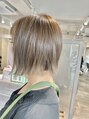 光が当たるたびに表情を変える、シークレットハイライトを施したストレートボブ。派手になりすぎず、上品な透明感と立体感を演出します。Wトリートメントで、ブリーチのダメージを最小限に抑えながら艶髪に。