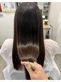 明るめのベージュ系カラー。伸ばし途中で重く見えないようにあえて少し明るめのカラーにしました。程よいラフ感がでるように毛先に少しレイヤーを入れてコテで巻いたときに動きやすくしています。