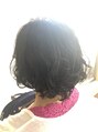 ショートボブスタイルに動きをつけるためにパーマをかけています^ ^ただまとまるだけでは物足りない、普段のデザインより動きが欲しい方にオススメです☆お手入れも7割くらい乾かしワックスを揉み込むだけでOKです^ ^