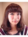 カットはワンレンベースの重ためのスタイル。カラーは9レベルのナチュラルブラウン。最後に中間から毛先にかけて38ミリのアイロンでゆるふわパーマ風にスタイリング。