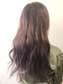 中間から毛先にかけてブリーチをして、パープル系のグラデーションに仕上げています。退色時の黄色味があまり気にならないので、おすすめです。