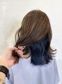 ベースはブラウン系のカラーに、インナー部分は2回程色を抜いてある状態に上から青系のカラーを被せています。普段のカラーに飽きた方や冒険してみたい!方におすすめのデザインカラーです!
