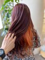 以前1度インナーをブリーチしているお客様です!さらにブリーチをしトーンを上げ、上からオレンジ色を被せています!表面は濃い赤を被せ暖かみのある発色にしています!