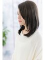 重めスタイルになりがちな黒髪ストレートは、透明感あるツヤカラーとハイレイヤー、毛先のワンカールでニュアンス感ある動きをつけて軽やかな雰囲気に。無造作なかきあげバングで色っぽさもプラス。耳かけしたり、くせ毛風毛先パーマのふわミディもモテ髪。