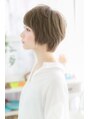 大人フェミニンなナチュラルショート。シンプルなスタイルほど似合わせカットの技が光ります。斜めバングで目力強調して、前下がりラインで輪郭カバーして小顔に。ベージュカラーで明るく仕上げれば、女性らしい仕上がりに。ショート初挑戦の方にもオススメ!