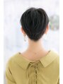 思い切った黒髪ベリーショートでクールでカッコイイ女性を演出。目の上ギリギリのジグザグバングで目力強調したり、全体的に丸みのあるフォルムでやわらかさを残すことでフェミニンな雰囲気も忘れません。首を長く見せて小顔に仕上げてスタイルUP効果も!