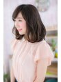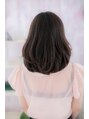 目力強調の斜めバングとぷっくりした丸みあるワンカールがとびきりフェミニンなスイートミディ。ローレイヤーの重めスタイルでも、ふんわり動くエアリーカールで軽やかに♪重軽MIXなふわミディはオフィスでもデートでもバッチリ。耳かけも大人かわいい。