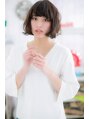 曲線をふんだんに使ってピュアな雰囲気に仕上げたエアリーボブ。前髪はもちろん、全体の毛先を内側にスイングさせて、しっとりまとめました。斜めバングやフリンジバングで透け感を出しながら目元を印象つけて。目力UPでガーリーな印象に。耳かけもカワイイ☆