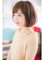 斜めバングで目力UP!暖色系カラーくせ毛風小顔ボブ
