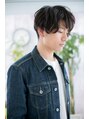 ニュアンスパーマで無造作な動きをつけ、長めバングで表情をチラ見せさせた、男の色っぽさを醸すグランジショート。トップはふんわりさせてスタイルアップを狙って。サイドと襟足は刈り上げでスッキリさせて清潔感キープ。七三サイドパートで旬顔に。