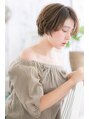 余計なものを削ぎ落したシンプルなナチュラルボブ。くせ毛風のゆるやかなカールをつけて、ニュアンス感ある動きを演出。マッシュやショートでも女性らしさが薫るフェミニンボブです。斜めバングで目元を印象つけたり、耳かけしても大人かわいい。