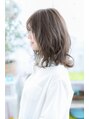 ラフに仕上げた無造作かわいいふわミディ。シースルーバングとレイヤーで透け感とニュアンス感ある動きを演出。長めの斜めバングで目力強調。肌なじみの良いマーメイドアッシュやベージュカラーで肌色キレイに。耳かけやラフなヘアアレンジも大人かわいい。