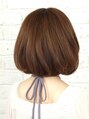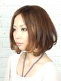内巻きボブ。サイドを少し前下がりにし、フロントを長めにしておくことで、甘くなりすぎない甘辛スタイルに。重めなスタイルですが毛先の表現をしやすいようにカットしています。髪質によってはストレートパーマやワンカールパーマでより扱いやすくなります。