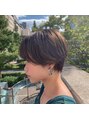 トップをやや長めに残したレイヤーショート。逆巻きをミックスしたパーマでくせ毛風な動きをメイク。透明感のあるグレージュをオン。