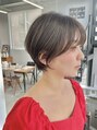 ブリーチ無しでも出来る赤味、オレンジ味を抑えたオリーブカラーが人気です!丸いひし形シルエットはショートの王道です、いつの時代も人気なコンパクトショートスタイル