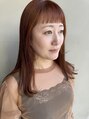 20代30代ミディアムロングオレンジカラーツヤカラー