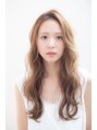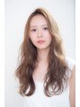 大きめのゆるいウェーブで柔らかく抜け感のあるスタイルに。ハニーアッシュの明るめカラーで夏らしく大人かわいく。前髪を眉で作っても印象が変わりますので是非ご相談下さい。