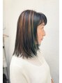 黒髪にワンポイントカラーで大人ミディアム
