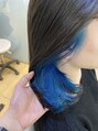 ミディアムレングスのボブスタイルインナーはブリーチ2回でアクアブルーをカバーカラー#ショート#ハンサムショート#ショートボブ#ボブ#ミニボブ#切りっぱなしボブ#外ハネボブ#地毛風ストレート#髪質改善カラー#髪質改善#髪質改善トリートメント
