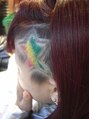 ブリーチリタッチON微アルカリ系レッドカラーでトーンダウンONレッドで深みのある人気レッドカラーに♪サイドは刈り上げ☆を彫り!ラスタカラーに染めれば、はい!ハイセンスBガールの完成!!