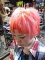 ガタガタの前髪がポイント♪カラーはピンクをベースにオレンジ色をポイントで入れてます。サイドの長いほうはエクステ。