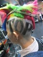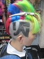 ブリーチ後レインボーカラーにしました。色は青、赤、黄色、黄緑、ピンクです。これこそ派手髪!!BIGBANGのライブ用です。内側にはバリアートを施しました。カットはTOPさん風です。