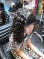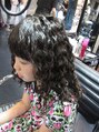 キッズパーマです。大きめのツイストスパイラルパーマをあてました。施術中も店のゲームやDVDでキッズも楽しめます♪